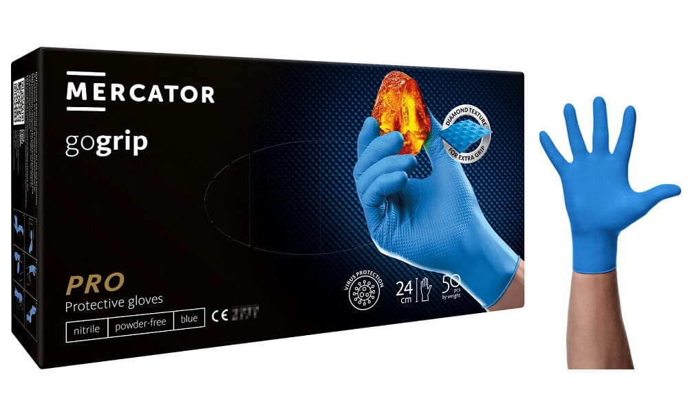 Rękawice Mercator Medical – opakowanie a’50. Rozmiar rękawic 24cm.